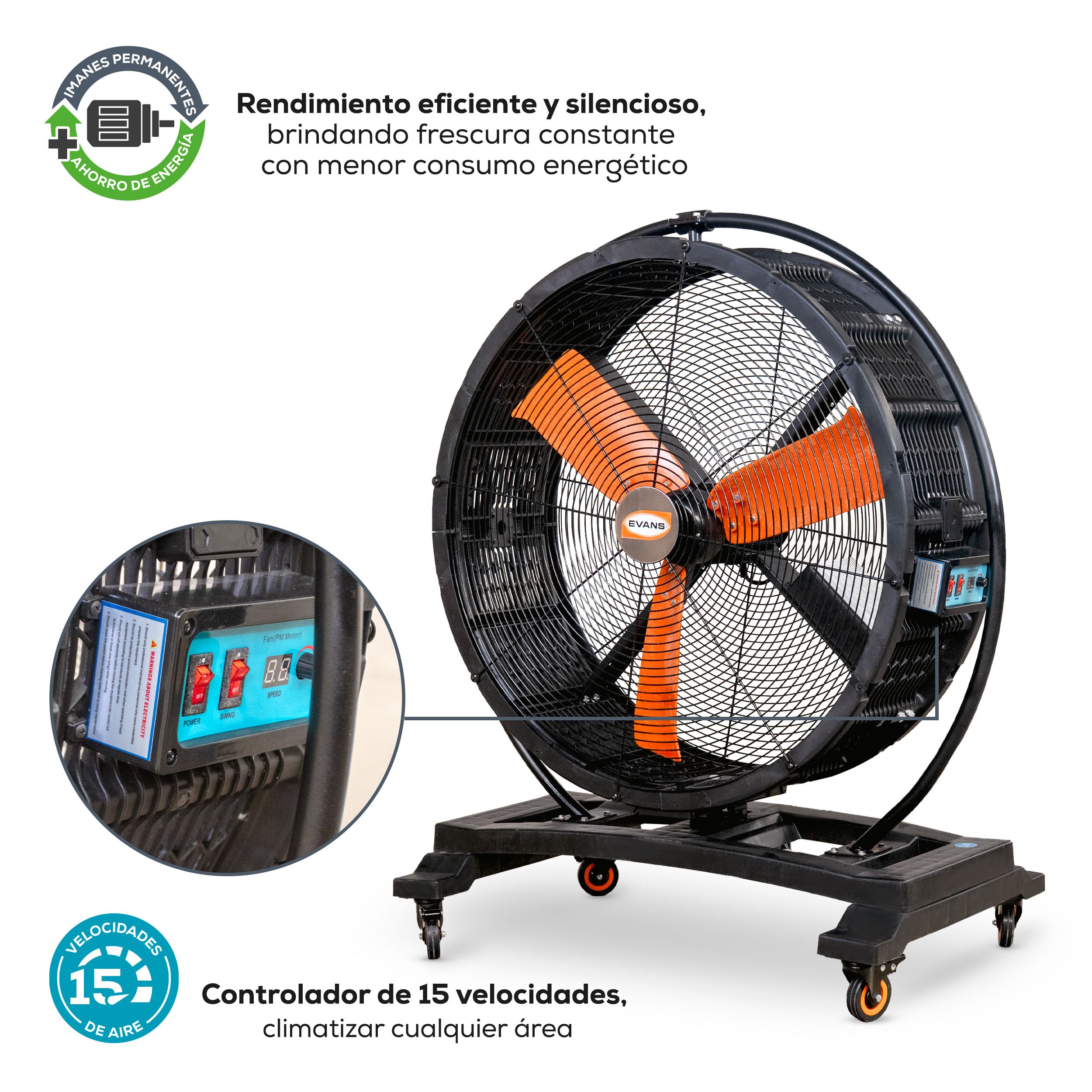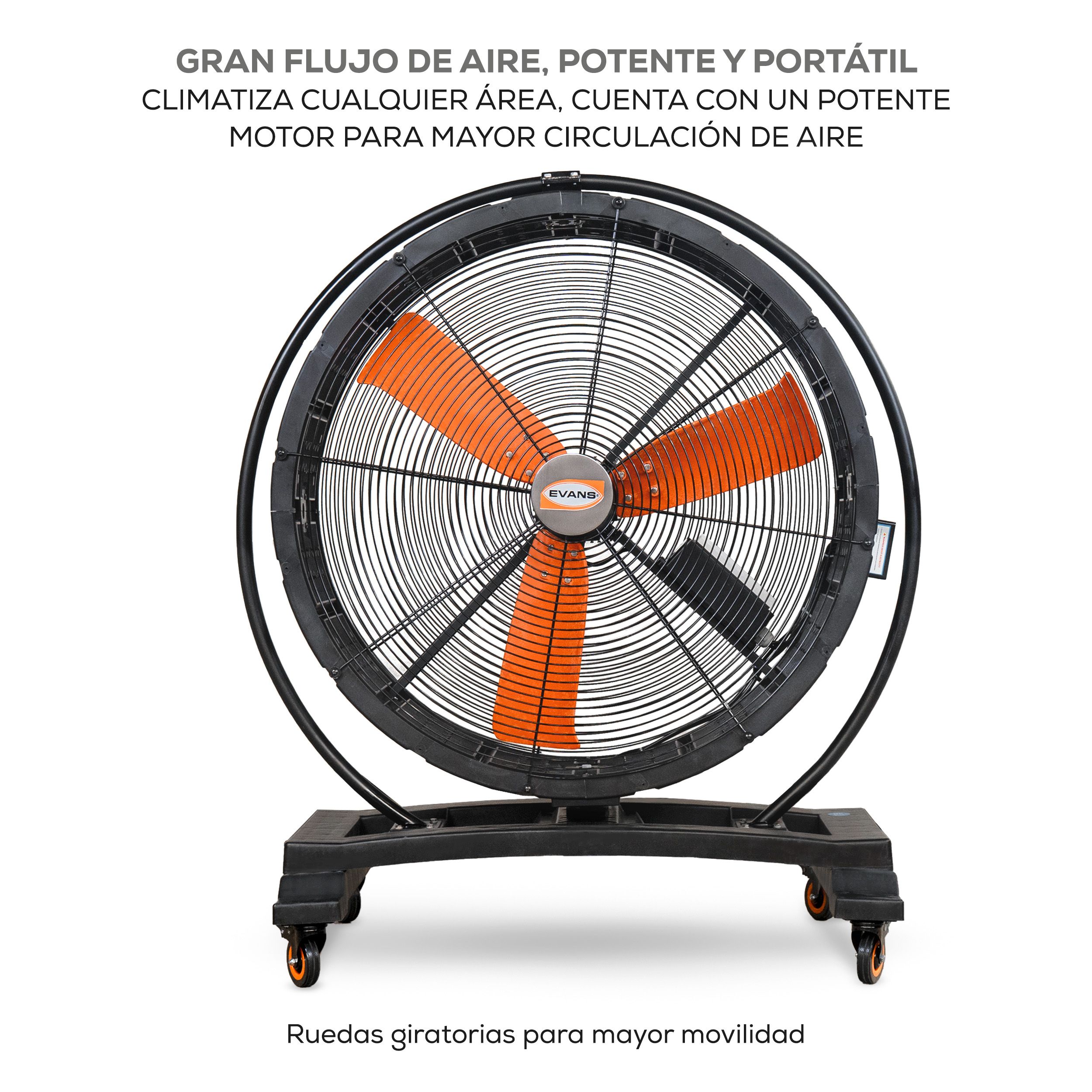 Gran flujo de aire, potente y portátil, cuenta con ruedas giratorias para mayor movilidad y un