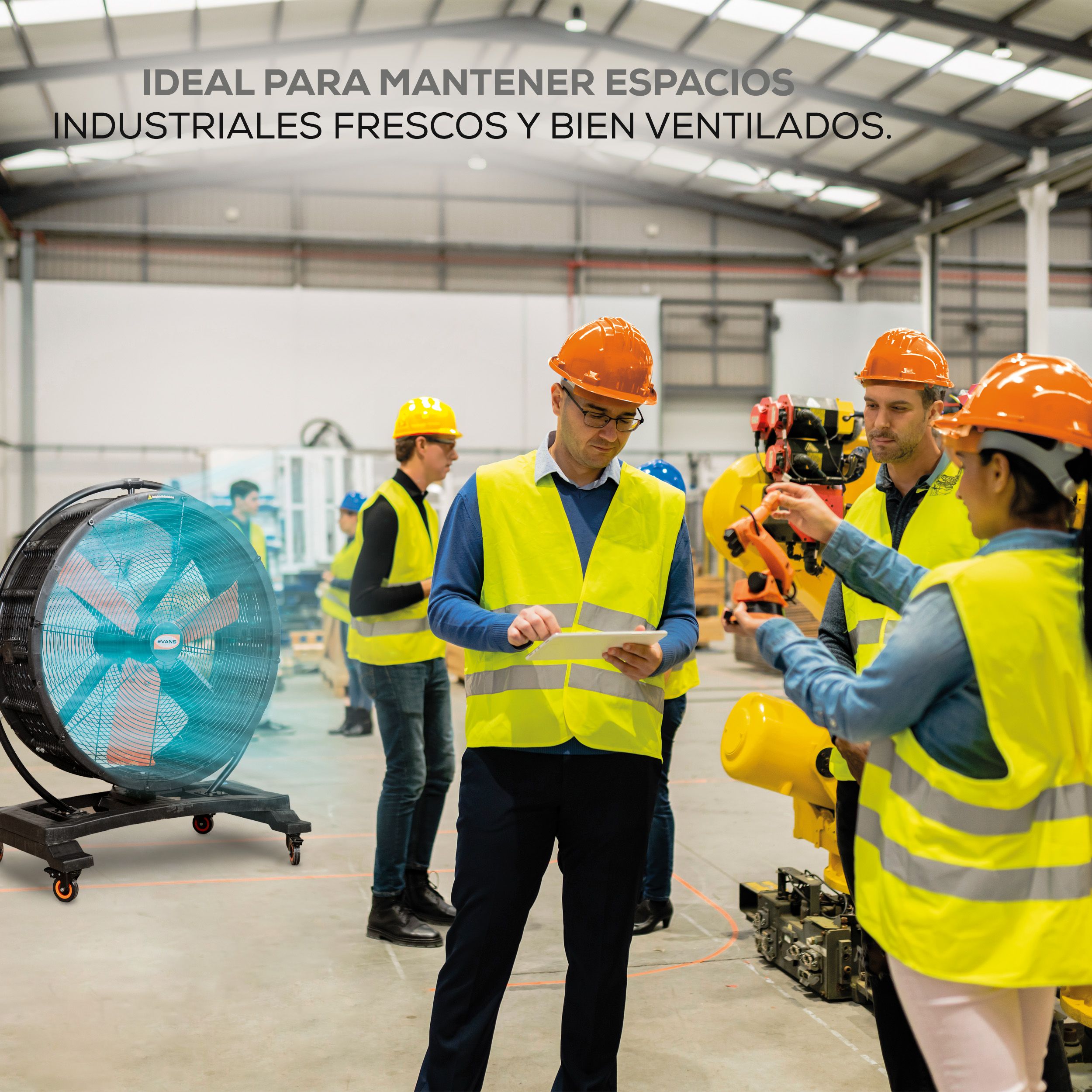 Beneficios Amplia cobertura en la circulación del aire para entornos industriales exigentes.